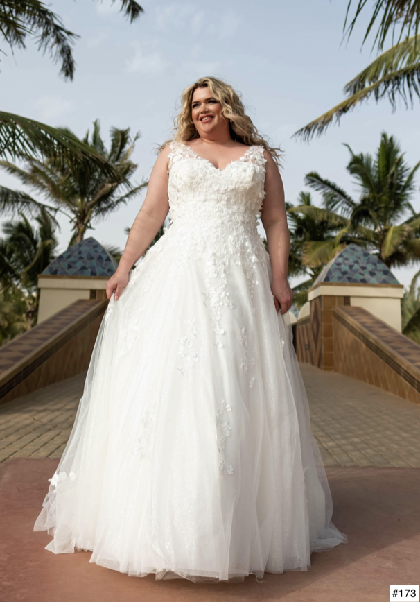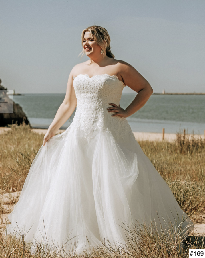 Wir lieben Bräute mit runden Kurven und führen speziell für Euch eine tolle und große Auswahl an Kleidern in den Größen 48 bis 58.